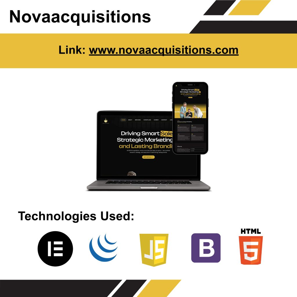 I designed an innovative and futuristic website for Nova Acquistion, showcasing their cutting-edge, Marketing and Sales Company with a sleek, modern design to attract and engage clients